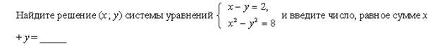 Вопрос id:640052 Чан наполняется двумя кранами при совместной работе за 1 ч. Наполнение чана только через первый кран длится вдвое дольше, чем через второй кран. За какой промежуток времени каждый кран отдельно может наполнить чан? ?) 7 и 3,5 ч ?) 2 и 4 ч ?) 3 и 6 ч ?) 3 и 1,5 ч Вопрос id:640053 ![]() Вопрос id:640054 ![]() Вопрос id:640055 ![]() Вопрос id:640056 ![]() Вопрос id:640057 ![]() Вопрос id:640058 ![]() Вопрос id:640059 ![]() Вопрос id:640060 ![]() Вопрос id:640061 ![]() ?) 10 ?) –16 ?) –12 ?) 14 Вопрос id:640062 ![]() ?) –5 ?) –1 ?) –3 ?) 3 Вопрос id:640063 ![]() ?) 12 ?) 4 ?) –8 ?) –3 Вопрос id:640064 ![]() ?) 5 ?) 4 ?) ?) Вопрос id:640065 ![]() ?) 14 ?) –7,8 ?) 1,2 ?) –3 Вопрос id:640066 ![]() ?) (7; –3), (9; 1) ?) (–3; 7), (4; 2) ?) (2; 5), (–1; 6) ?) (–2; 4), (3; 9) Вопрос id:640067 ![]() ?) (–1; 2), (2; –1) ?) (–2; 3), (–3; 2) ?) (1; 0), (0; 1) ?) (–3; 4), (4; –3) Вопрос id:640068 ![]() ?) (–4; –2), (0,1; 0,4) ?) (5; 1), (0,3; 0,9) ?) (–2; 1), (0,2; 0,5) ?) (3; 2), (–0,4; 0,3) Вопрос id:640069 ![]() ?) (0; 1), (–2; 2) ?) (1; 1) ?) (–5; 2), (6; –1) ?) (4; 2), (3; 8) Вопрос id:640070 ![]() ?) (5; –1), (5; 1), (–5; –1), (–5; 1) ?) (2; –5), (2; 5), (–2; –5), (–2; 5) ?) (4; –3), (4; 3), (–4; –3), (–4; 3) ?) (3; –2), (3; 2), (–2; –3), (–2; 3) Вопрос id:640071 ![]() ?) (4; –1), (4; 1), (–4; –1), (–4; 1) ?) (–4; –1), (–4; 1) ?) (4; –1), (4; 1) ?) (4; 1) Вопрос id:640072 ![]() ?) 1 ?) 2 ?) 4 ?) 3 Вопрос id:640073 ![]() ?) (1; 1), (0,5; 3), (2; –1), (–2; 4) ?) (1; 1), (0,5; 2), (2; –1), (–0,5; 4) ?) (4; 1), (0,5; 2), (0,5; –1), (–0,5; 4) ?) (1; 4), (1; 2), (2; –1), (–0,5; 4) Вопрос id:640074 ![]() Вопрос id:640075 ![]() Вопрос id:640076 ![]() Вопрос id:640077 Введите «да», если соотношения верны, и «нет», если неверны?) да ?) нет Вопрос id:640078 ![]() ?) 15 ?) –3 ?) 9 ?) –9 Вопрос id:640079 ![]() ?) ?) 6 ?) ?) –5 |