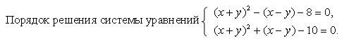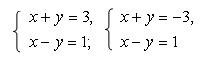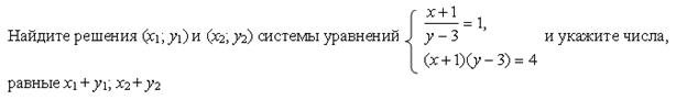 Список вопросов базы знанийАлгебра (9 класс)Вопрос id:640080 ![]() ?) 1 ?) –2 ?) 8 ?) 9 Вопрос id:640081 ![]() ?) –2 ?) 2 ?) –4 ?) 6 Вопрос id:640082 ![]() ?) 9 ?) ?) 8 ?) Вопрос id:640083 .?) (5; 1), (–5; –1), (1; 5), (–1; –5) ?) (1; 4), (–1; –4), (4; 1), (–4; –1) ?) (2; 4), (–2; –4), (4; 2), (–4; –2) ?) (3; 2), (–3; –2), (2; 3), (–2; –3) Вопрос id:640084 ![]() ?) (4; 6) ?) (–1; 5) ?) (3; –4) ?) (–2; 1) Вопрос id:640085 ![]() ?) (–1; 3) ?) (1; –3) ?) (–3; 1) ?) (3; –1) Вопрос id:640086 ![]() ?) (–2; 3) ?) (2; 1) ?) (3; 2) ?) (4; 5) Вопрос id:640087 ![]() ?) ?) (–1; 1,5) ?) ?) (–2; 0,5) Вопрос id:640088 ![]() ?) ?) ?) ?) Вопрос id:640089 Найдите решения (х1; у1) и (х2; у2) системы уравнений и введите число, равное сумме х1 + у1 + х2 + у2 = ___ Вопрос id:640090 ![]() ?) ![]() ?) ![]() ?) ![]() ?) ![]() Вопрос id:640091 ![]() ?) при t = 3: р = 2 при t = 2: р = 3 ?) ![]() ?) Решениями системы будут решения системы (1) ?) Замена переменных: ?) ?) Вопрос id:640092 Укажите количество решений системы уравнений ![]() ?) 8 ?) 6 ?) 4 ?) 2 Вопрос id:640093 Алгоритм использования метода подстановки при решении системы двух уравнений с двумя переменными х, у ?) подставить каждый из корней уравнения поочередно вместо х в выражение у через х ?) записать ответ в виде пар значений (х; у) ?) подставить выражение для у вместо у в другое уравнение системы ?) выразить у через х из одного уравнения системы ?) решить полученное уравнение относительно х Вопрос id:640094 Две системы уравнений с переменными х и у называют ___, если они имеют одни и те же решения или если обе системы не имеют решений Вопрос id:640095 Две системы уравнений с переменными х и у называют равносильными, если ?) обе системы не имеют решений ?) в состав уравнений обеих систем входят переменные с одинаковыми степенями ?) они имеют одни и те же решения ?) одно из уравнений одной системы равносильно одному из уравнений другой системы Вопрос id:640096 Методы решения систем уравнений с двумя переменными ?) метод разложения на множители ?) графический метод ?) метод алгебраического сложения ?) метод подстановки ?) метод замены переменных Вопрос id:640097 Укажите методы решения систем уравнений, использование которых приводит к более простой, но равносильной первоначальной системе уравнений ?) метод алгебраического сложения ?) метод подстановки ?) метод замены переменных ?) графический метод Вопрос id:640098 Укажите соответствие между системой уравнений и ее решением