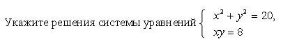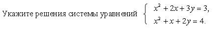 Вопрос id:640099 Укажите соответствие между системой уравнений и ее решением