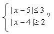 ?) х ≥ 5 ?) –5 ≤ х < 0, х ≥ 9 ?) х ≥ 9 ?) –5 ≤ х < 0 |