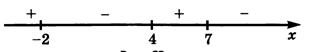 ?) -2, 4 ?) 4, 7 ?) -2, 7 ?) -2, 4, 7 Вопрос id:658901 Определите, в каких точках функция имеет экстремум, если на числовой прямой изображены точки, в которых производная функции равна нулю и даны знаки производной на интервалах