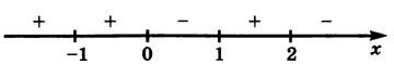 ?) 0, 1, 2 ?) 0, 1 ?) -1, 0, 1 ?) -1, 0, 1, 2 Вопрос id:658900 Определите, в каких точках функция имеет экстремум, если на числовой прямой изображены точки, в которых производная функции равна нулю и даны знаки производной на интервалах