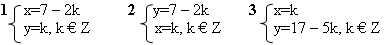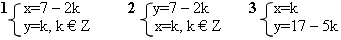 Вопрос id:662206 Найти целочисленные решения уравнения х + 2у =7. Введите номер правильного ответа: