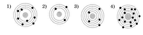 ?) 1 ?) 3 ?) 4 ?) 2 Вопрос id:690708 На рисунке изображены схемы четырех атомов. Черными точками обозначены электроны. Атому