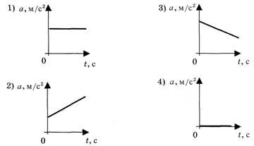 ?) 2 ?) 3 ?) 1 ?) 4 Вопрос id:692166 На рисунках представлены графики зависимости модуля ускорения от времени для разных видов движения. Равномерному движению соответствует график ___