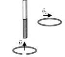Вопрос id:692168 Проводящее кольцо с разрезом из начального положения поднимают вверх к полосовому магниту, а сплошное проводящее кольцо из начального положения смещают вправо (см. рисунок). При этом индукционный ток___