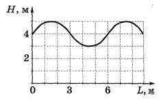 ?) постоянно увеличивается ?) не меняется ?) сначала уменьшается, а затем увеличивается ?) сначала увеличивается, а затем уменьшается Вопрос id:692207 На рисунке показан график зависимости высоты Н уровня воды (относительно дна) от расстояния L до края бассейна в определенный момент времени. Длина волны равна, равна___ м. (впишите число)