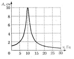 Вопрос id:692212 На рисунке представлен график зависимости амплитуды А вынужденных колебаний от частоты ν вынуждающей силы. Резонанс происходит при частоте___Гц (впишите число)