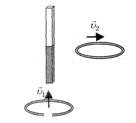 ?) в сплошном кольце возникает индукционный ток, а в разрезанном – нет ?) сплошное кольцо сделано из алюминия, а разрезанное -из стали ?) сплошное кольцо сделано из стали, а разрезанное – из алюминия ?) в сплошном кольце не возникает вихревое электрическое поле, а в разрезанном – возникает Вопрос id:691055 Один раз кольцо падает на стоящий вертикально полосовой магнит так, что надевается на него, второй раз так, что пролетает мимо него. Плоскость кольца в обоих случаях горизонтальна. Ток в кольце возникает ___