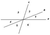 ?) с, А ?) Окр. (А; а) ?) ВС, ΔАВС ?) Окр. (А; b) ?) r > AC, Окр. (С; r) Вопрос id:701187 Три пересекающиеся в одной точке прямые а, b и c делят плоскость на 6 углов. Два из этих углов равны 20º и 30º. Чему равны остальные углы?