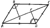 Список вопросов базы знанийГеометрия (7 класс)Вопрос id:701341 Утверждение «Через точку, не лежащую на данной прямой, проходит только одна прямая, параллельная данной» есть ___ ?) следствие 1 из аксиомы параллельных прямых ?) аксиома параллельных прямых ?) первый признак параллельности прямых ?) следствие 2 из аксиомы параллельных прямых Вопрос id:701342 Верны ли определения? А) Если боковая сторона и угол, противолежащий основанию, одного равнобедренного треугольника соответственно равны боковой стороне и углу, противолежащему основанию, другого равнобедренного треугольника, то такие треугольники равны В) В равностороннем треугольнике все углы равны Подберите правильный ответ ?) А - да, В - да ?) А - нет, В - да ?) А - нет, В - нет ?) А - да, В - нет Вопрос id:701343 Верны ли определения? А) Равнобедренный треугольник является равносторонним В) В равнобедренном треугольнике углы при основании равны Подберите правильный ответ ?) А - нет, В - нет ?) А - да, В - да ?) А - нет, В - да ?) А - да, В - нет Вопрос id:701344 Верны ли определения? А) Равносторонний треугольник является равнобедренным В) В равнобедренном треугольнике все углы равны Подберите правильный ответ ?) А - да, В - да ?) А - нет, В - нет ?) А - да, В - нет ?) А - нет, В - да Вопрос id:701345 Верны ли определения? А) Середины сторон равнобедренного треугольника являются вершинами другого равнобедренного треугольника В) В равнобедренном треугольнике углы при основании равны Подберите правильный ответ ?) А - да, В - да ?) А - нет, В - нет ?) А - нет, В - да ?) А - да, В - нет Вопрос id:701346 Верны ли утверждения? А) В равных треугольниках медианы, проведенные к равным сторонам, равны В) Если медиана треугольника совпадает с его высотой, то треугольник равнобедренный Подберите правильный ответ ?) А - нет, В - нет ?) А - нет, В - да ?) А - да, В - да ?) А - да, В - нет Вопрос id:701347 Верны ли утверждения? А) Если биссектриса треугольника совпадает с его высотой, то треугольник – равнобедренный В) Равнобедренные треугольники равны, если основание и прилежащий к нему угол одного треугольника соответственно равны основанию и прилежащему к нему углу другого треугольника Подберите правильный ответ ?) А - нет, В - нет ?) А - нет, В - да ?) А - да, В - да ?) А - да, В - нет Вопрос id:701348 Верны ли утверждения? А) Если периметр одного треугольника равен периметру другого треугольника, то такие треугольники равны В) Если отрезки АС и BD пересекаются и точкой пересечения делятся пополам, то Подберите правильный ответ ?) А - нет, В - нет ?) А - да, В - да ?) А - нет, В - да ?) А - да, В - нет Вопрос id:701349 Верны ли утверждения? А) Если сторона одного равностороннего треугольника равна стороне другого равностороннего треугольника, то треугольники равны В) В равных треугольниках биссектрисы, проведенные к соответственно равным сторонам, равны Подберите правильный ответ ?) А - нет, В - да ?) А - нет, В - нет ?) А - да, В - да ?) А - да, В - нет Вопрос id:701350 Верны ли утверждения? А) Любая хорда окружности всегда меньше ее диаметра В) Диаметр окружности в два раза больше ее радиуса Подберите правильный ответ ?) А - нет, В - нет ?) А - нет, В - да ?) А - да, В - да ?) А - да, В - нет Вопрос id:701351 На рисунке AB = CD, AD = BC, BE – биссектриса угла ABC, a DF – биссектриса угла ADC.
