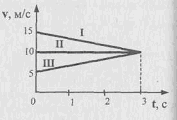 ?) 2 ?) 1/2 ?) 1 ?) Вопрос id:709031 На рисунке представлены графики скорости трех тел, движущихся прямолинейно. Определить, каким из трех тел пройден наименьший путь за 3 с