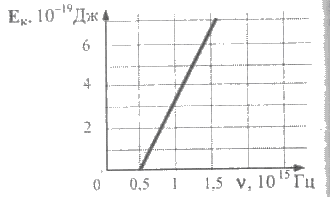 ?) только с А ?) только с В ?) с любым из указанных направлений ?) только с С Вопрос id:709489 Слой оксида кальция облучается светом и испускает электроны. На рисунке показан график изменения максимальной энергии фотоэлектронов в зависимости от частоты падающего света. Работа выхода фотоэлектронов из оксида кальция равна: