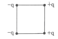 ?) 1,4 эВ ?) 0,7 эВ ?) 2,8 эВ ?) 2,1 эВ Вопрос id:709490 Указать, как направлен вектор напряженности электрического поля в центре квадрата, созданного зарядами, которые расположены в его вершинах так, как это представлено на рисунке.