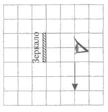 ?) 1/4 ?) вся стрелка ?) стрелка не видна вообще ?) 1/2 Вопрос id:709492 Указать, на сколько клеток и в каком направлении следует переместить глаз, чтобы изображение стрелки в зеркале было видно ему полностью (см. рис.).