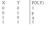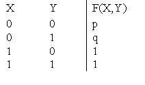 ?) p = 1, q = 1 ?) p = 0, q = 1 ?) p = 1, q = 0 ?) p = 0, q = 0 Вопрос id:746865 В таблице булевой функции «импликация» значения p, q равны