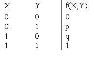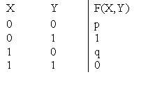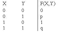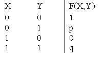 ?) p = 0, q = 0 ?) p = 0, q = 1 ?) p = 1, q = 1 ?) p = 1, q = 0 Вопрос id:746867 В таблице булевой функции «конъюнкция» значения p, q равны