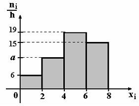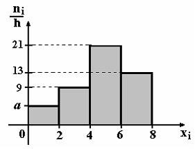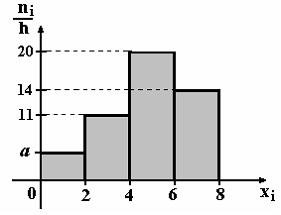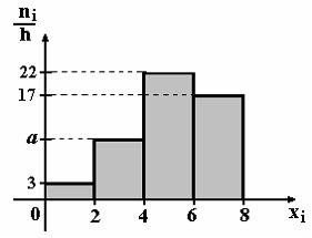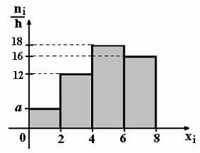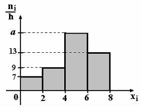 Тогда значение а равно ?) 57 ?) 6 ?) 8 ?) 7 Вопрос id:753831 По выборке объема n=100 построена гистограмма частот: