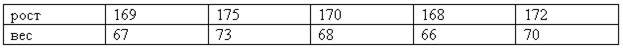 Список вопросов базы знанийМатематическая статистика (магистр, курс 1)Вопрос id:772530 Найти эмпирический коэффициент корреляции между весом и ростом для выборки:
