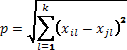 - значения l – го признака, соответственно, у i – го или j- го объекта