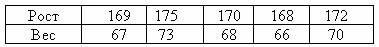 Коэффициент корреляции равен: ?) 1 ?) 0,8 ?) -0,8 ?) -1 Вопрос id:782177 Найти эмпирический коэффициент корреляции между весом и ростом для выборки: