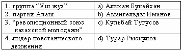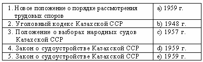 Список вопросов базы знанийИстория государства и права КазахстанаВопрос id:843306 Конституционный закон о государственной независимости Республики Казахстан был принят ?) 16 марта 1991 г. ?) 16 декабря 1991 г. ?) 16 июня 1993 г. ?) 16 мая 1995 г. ?) 16 декабря 1990 г. Вопрос id:843307 Конституция КазССР 1937 г. была принята на основе ?) Конституции СССР 1936 г. ?) Конституции РСФСР 1918 г. ?) Декларации прав трудящихся КАССР ?) Трех документов конституционного характера ?) Декрета о землеустройстве Вопрос id:843308 Конституция КазССР 1937 г. законодательно закрепила ?) гарантии естественных прав человека ?) преобразование Киргизской Автономной Советской Социалистической Республики в суверенную Казахскую Союзную Советскую Социалистическую Республику ?) принцип разделения властей ?) что Казахстан является самостоятельным суверенным государством с правом выхода на международную арену ?) что Казахская ССР есть социалистическое правовое демократическое государство Вопрос id:843309 Местные суды состояли из ?) постоянных биев-аксакалов ?) представителей биев от каждого рода ?) трех инстанций - мирового судьи, аульного судьи, волостного судьи ?) двух инстанций - участкового мирового судьи и уездного съезда мировых судей; ?) единоличных биев-султанов Вопрос id:843310 На втором общеказахском съезде в целях недопущения анархии в казахской степи делегаты приняли важнейшие решения: ?) об образовании автономии Алаш и формировании собственных вооруженных сил ?) вернуть земли крестьянам и установить властьТуркестанского муфтариата. ?) сформировать казахскую постоянную армию, провести налоговую реформу ?) об образовании государства Алаш и подписания договора с Кокандом ?) создать социалистическую республику Казахстан и установить советскую власть в Коканде Вопрос id:843311 Наряду с социалистической системой хозяйства по Конституции КазССР 1937 г. допускалось ?) мелкое частное хозяйство единоличных крестьян, исключая эксплуатацию чужого труда ?) участие иностранных граждан в качестве учредителей кооперативов ?) наличие негосударственных банков ?) частная собственность на средства производства ?) совместная собственность советских и иностранных граждан Вопрос id:843312 НКЮ КАССР приняло постановление «О борьбе с преступлениями, связанными с пережитками родовых отношений, и о работе судебно-прокурорских органов по охране прав женской молодежи» ?) 17 февраля 1936 г. ?) 17 января 1921 г. ?) 17 ноября 1924 г. ?) 17 декабря 1928 г. ?) 17 марта1920 г. Вопрос id:843313 Окружной суд состоял из ?) трех коллегий ?) единоличных биев-султанов ?) волостных и аульных судов ?) чрезвычайного суда и общей юрисдикции ?) двух и более отделений Вопрос id:843314 Окружной суд являлся ?) судом по гражданским делам ?) первой инстанцией общих судов ?) судом по административным делам ?) апелляционным судом ?) судом по уголовным делам Вопрос id:843315 Первый всеказахский съезд практически своим решением подтвердил создание казахской политической партии ?) “Шура-ислами” и “Шура-улема” ?) “Казах” ?) “Уш жуз” ?) “Алаш”; ?) “Вакуф” Вопрос id:843316 По «Положению о выборах народных судов Казахской ССР» 1948 г. судьи избираются гражданами района на основе всеобщего, равного, избирательного права при тайном голосовании ?) на 5 лет ?) на 3 г. ?) до 60 лет ?) пожизненно ?) на 10 лет Вопрос id:843317 По «Положению о выборах народных судов Казахской ССР» 1948 г. судьями и народными заседателями могл