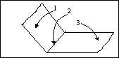 отмечены элементы двухгранного угла: 1) ___; 2) ___; 3) ___