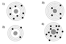 ?) 3 ?) 2 ?) 4 ?) 1 Вопрос id:978031 На рисунке изображены схемы четырех атомов. Черными точками обозначены электроны. Атому