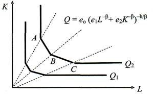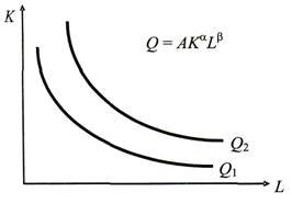 ?) фиксированными пропорциями факторов. ?) взаимозаменяемыми факторами ?) неограниченным количеством комбинаций производственных факторов ?) взаимодополняемыми факторами Вопрос id:1060534 Изокванты, выраженные гладкими выпуклыми линиями на рисунке, характерны для технологии с