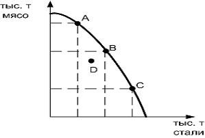 Кривая производственных возможностей не показывает проблему ?) альтернативных издержек ?) выбора ?) благосостояния ?) возрастания затрат Вопрос id:1063528 На рисунке показана кривая производственных возможностей.
