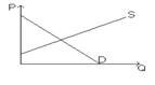 Если правительство установит фиксированную цену выше равновесной цены, то ?) возникнет избыток товаров ?) снизится рыночная цена ?) повысится спрос ?) возникнет дефицит товаров Вопрос id:1063551 На рисунке показаны кривые спроса (D) и предложения (S).