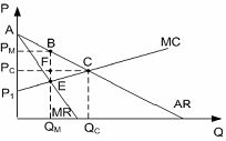 Дополнительная прибыль, получаемая монополистом от продажи товара по монопольным ценам равна площади фигуры