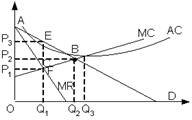 Потери потребителей от монопольной власти равны площади фигуры ?) Q1CBQ2 ?) P2P3EB ?) P1P2CF ?) СЕВ Вопрос id:1064903 На рисунке показаны кривые спроса (D), предельного дохода (MR), средних (AC) и предельных (MC) издержек фирмы в условиях монополистической конкуренции.