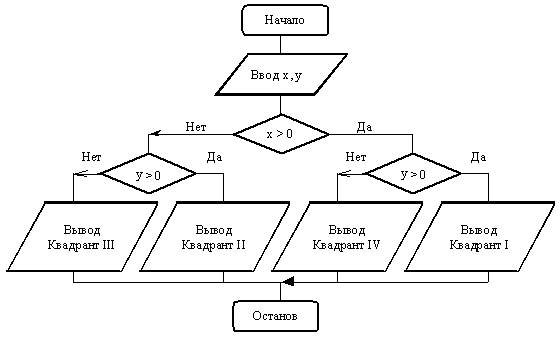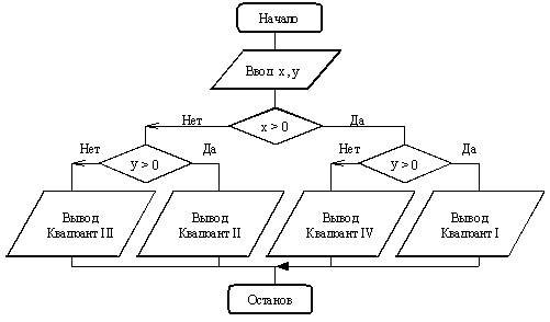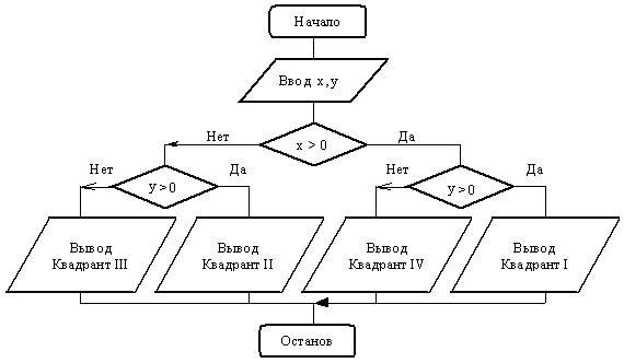 При X = 1, Y = 0 решением задачи по приведенному алгоритму является ?) “Квандрант IV” ?) “Квандрант II” ?) “Квандрант I” ?) “Квандрант III” Вопрос id:1207255