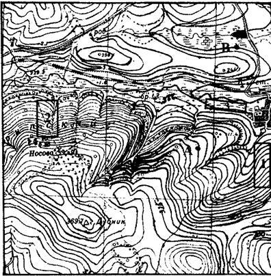 Масштаб: 1 : 25 000 в 1 см 250 м. Сплошные горизонтали проведены через 5 метров ?) 1420 ?) 710 ?) 3250 ?) 2580 Вопрос id:1293280 Определим по карте расстояние на местности по прямой от точки с абсолютной высотой 370,0 м и до точки с абсолютной высотой 372,3 м. Полученный результат округлим до десятков метров. В итоге получим, что это расстояние равно ___ м