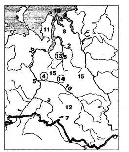 Вопрос id:1294035 Установите соответствие между названием физико-географического объекта и цифрой на карте ![]()