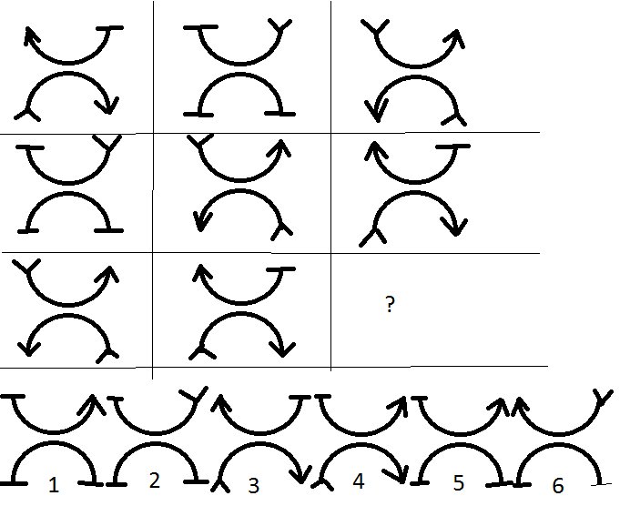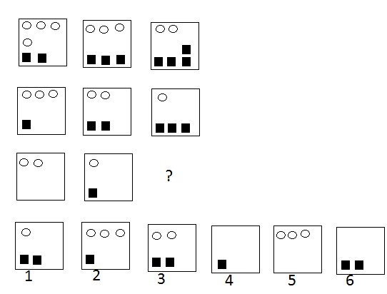 Вопрос id:709 Тема/шкала: Шкала 1,вставить в скобки число Вставьте пропущенное число. 437 (410) 642 541 ( ) 783 Вопрос id:710 Тема/шкала: Шкала 1,порядковый номер букв в верхнем ряду Вставьте пропущенное слово. ПАРУС (САЖА) САРЖА АНОНС ( ) ОГРЕХ Вопрос id:711 Тема/шкала: Шкала 1,продолжить числовой ряд Вставьте пропущенное число. 0 3 8 15 ? Вопрос id:712 Тема/шкала: Шкала 1,анаграмма Исключите лишнее слово. шпаук саивл реох шрауг Вопрос id:713 Тема/шкала: Шкала 1,общее слово Вставьте слово, которое означало бы то же самое, что и слова, стоящие вне скобок. ЛЕС ( ) ХИМИЧЕСКИЙ ЭЛЕМЕНТ Вопрос id:714 Тема/шкала: Шкала 1,выбрать подходящую картинку Выберите нужную фигуру из шести пронумерованных ![]() ?) 1 ?) 2 ?) 3 ?) 4 ?) 5 ?) 6 Вопрос id:715 Тема/шкала: Шкала 1,порядковый номер букв в верхнем ряду Вставьте пропущенное слово. ВОСК (СОХА) ФРАХТ СКОТ ( ) ФРОНТ Вопрос id:716 Тема/шкала: Шкала 1,продолжить числовой ряд Вставьте недостающее число 1 8 16 25 ? Вопрос id:717 Тема/шкала: Шкала 1,выбрать подходящую картинку Выберите нужную фигуру из шести пронумерованных ![]() ?) 1 ?) 2 ?) 3 ?) 4 ?) 5 ?) 6 Вопрос id:718 Тема/шкала: Шкала 1,общее слово Вставьте слово, которое означало бы то же самое, что ио слова, стоящие вне скобок. СКАМЬЯ ( ) МАГАЗИН