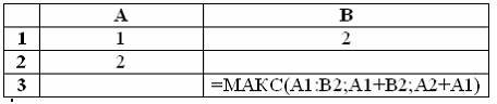 Значение в ячейке В3 будет равно ?) 3 ?) 4 ?) 5 ?) 8 Вопрос id:1422294 Представлен фрагмент электронной таблицы в режиме отображения формул:
