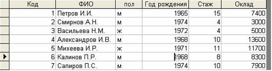 по условиям (год рождения>1970) И (стаж>=10) будут доступны записи ?) 5 ?) 2, 3, 5, 7 ?) 5, 7 ?) 1, 4, 5, 7 Вопрос id:1422307 Результатом запроса к реляционой базе данных (в СУБД Access), изображенного на рисунке,