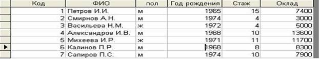 по условиям (пол=«м») И (оклад>8000) И (стаж>5) будут доступны записи ?) 4, 5 ?) 4, 5, 6 ?) 4, 6 ?) 1, 4, 5, 6, 7 Вопрос id:1422306 При фильтрации записей реляционной таблицы