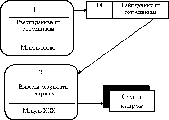 Запишите слово, которым необходимо заменить надпись ХХХ внутри блока 2. Вопрос id:1457710 Предположим, модель потока данных программного комплекса «Отдел кадров» имеет вид: