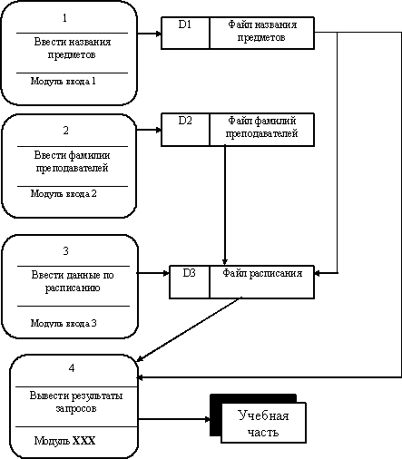 Запишите слово, которым необходимо заменить надпись ХХХ внутри блока 4. Вопрос id:1457714 Предположим, модель потока данных программного комплекса «Расписание» имеет вид: