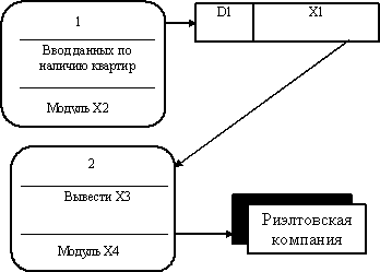 Запишите, какое обозначение на схеме нужно заменить записью «Файл данных по квартирам». Ответ дать русскими буквами Вопрос id:1457716 Предположим, модель потока данных программного комплекса «Риэлтовская компания» имеет вид:
