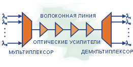 (___ оптические интерфейсы), которые потом преобразуются в волны с заданными длинами волн в транспондерах