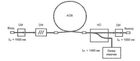 ?) направленный ответвитель ?) новистор ?) нагрузка оптическая ?) нейтральный ответвитель Вопрос id:1605066 В схеме оптического усилителя на примесном волокне на рисунке приведен оптический пассивный элемент – ОИ, обозначающий