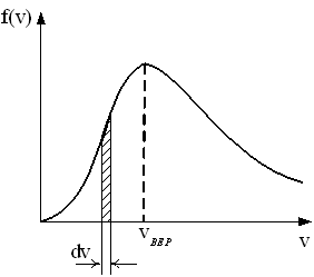 - доля молекул, скорости которых заключены в интервале скоростей от v до v+dv в расчете на единицу этого интервала.