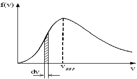 - доля молекул, скорости которых заключены в интервале скоростей от v до v+dv в расчете на единицу этого интервала.