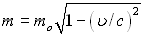 , близкой к скорости света с. Зависимость массы этого тела от скорости при массе покоя