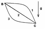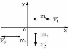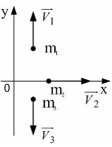 Если скорости шаров равны v1=3м/с, v2=2м/с, v3=1м/с, то вектор скорости центра масс этой системы направлен