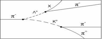 -мезона с протоном в водородной пузырьковой камере, которое идет по схеме